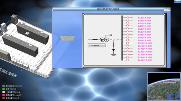 對(duì)主要回路開(kāi)關(guān)的通斷狀況進(jìn)行監(jiān)測(cè)。當(dāng)開(kāi)關(guān)跳閘或斷電時(shí),系統(tǒng)自動(dòng)切換到相應(yīng)的運(yùn)行畫(huà)面,同時(shí)發(fā)出多媒體語(yǔ)音和電話(huà)語(yǔ)音報(bào)警等,通知管理員盡快處理,并事件記錄到系統(tǒng)中。